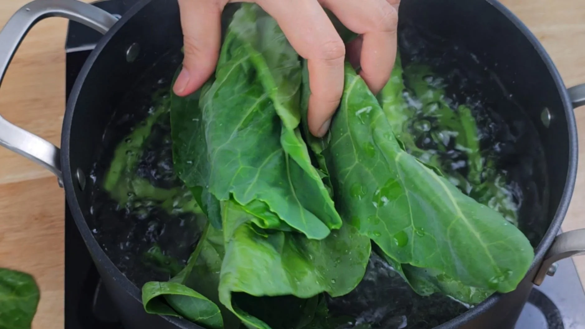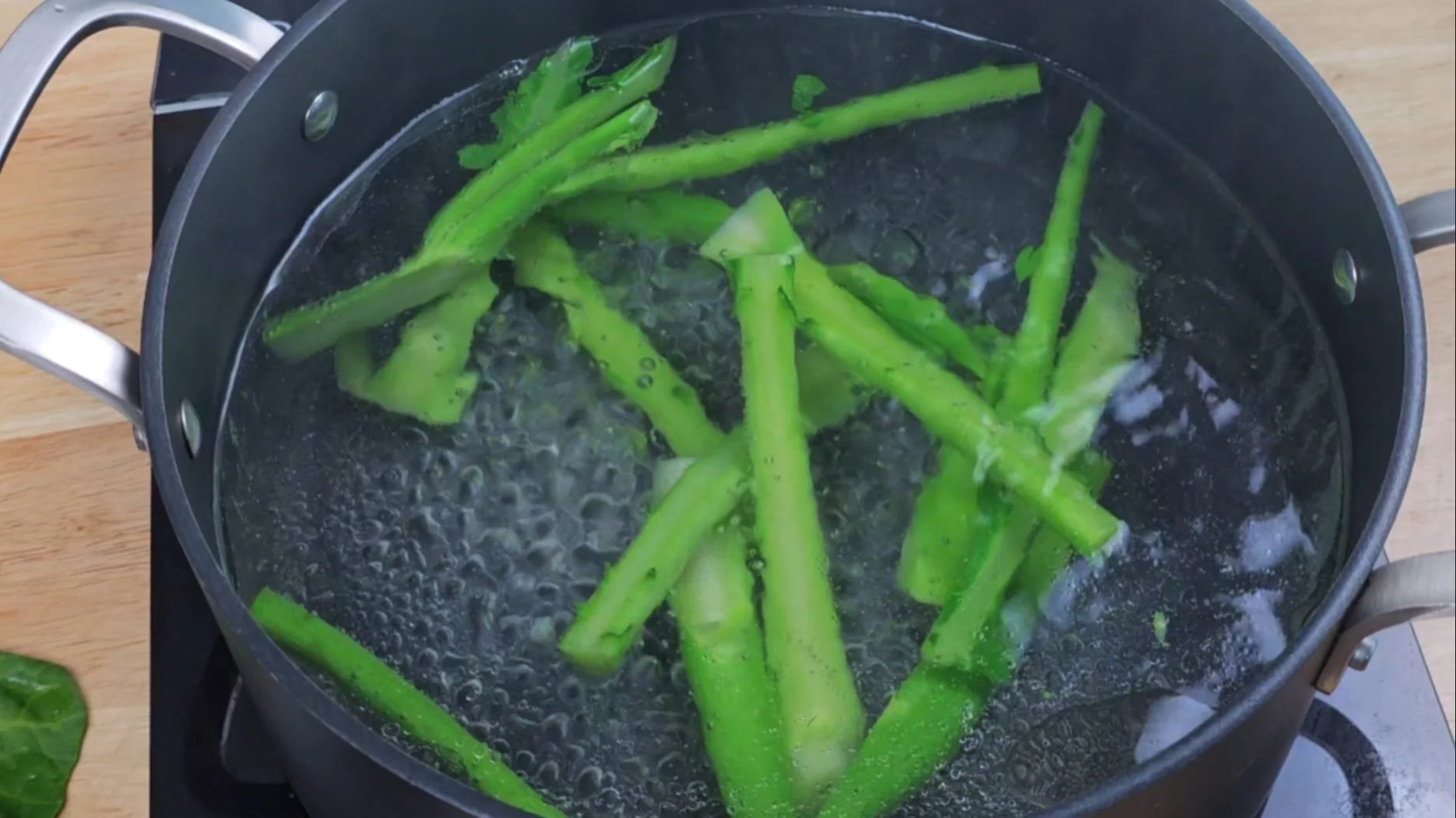 Cook the stems for 1–2 minutes before adding the leaves for another minute until just tender and vibrant green.