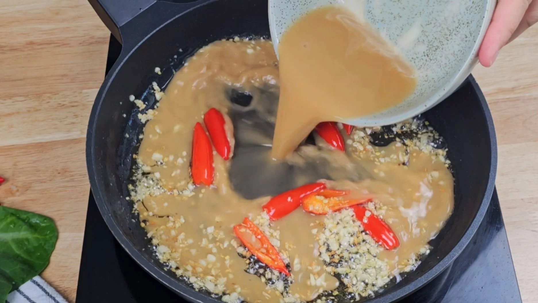 Then pour in the sauce mixture.