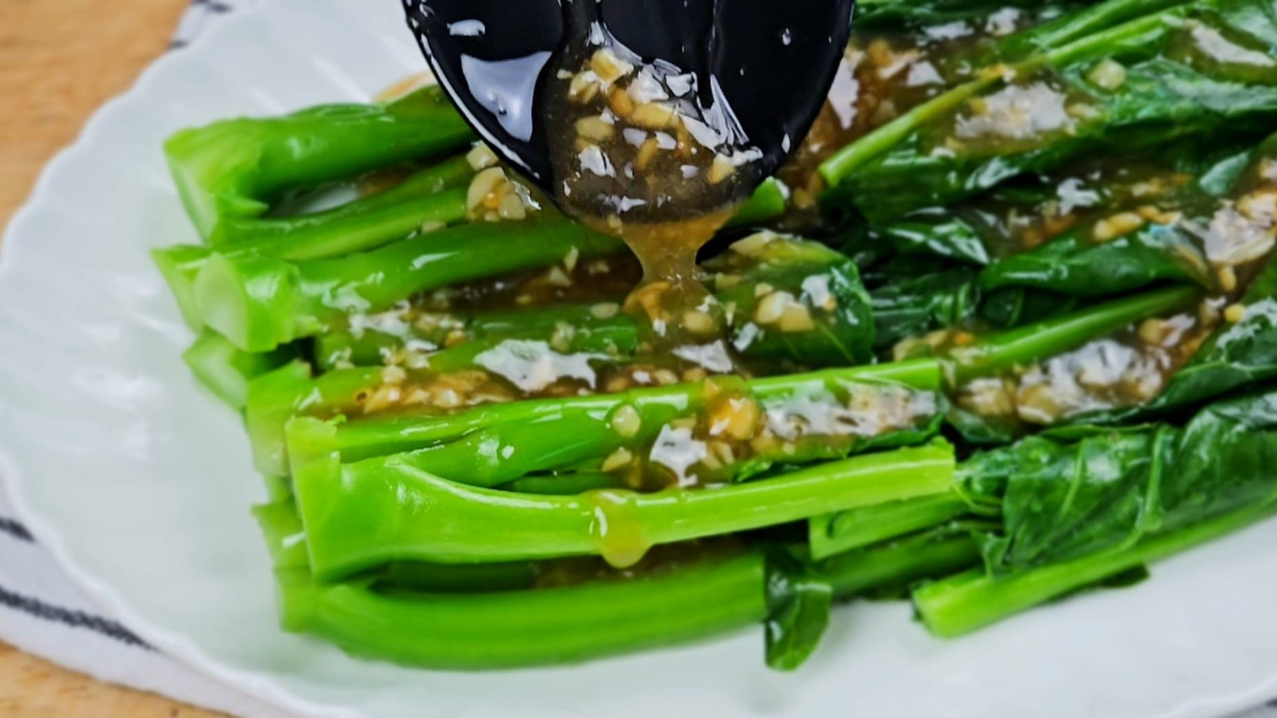 Pour it over the blanched kailan and serve immediately — a delicious, restaurant-style vegetable dish made effortlessly at home.