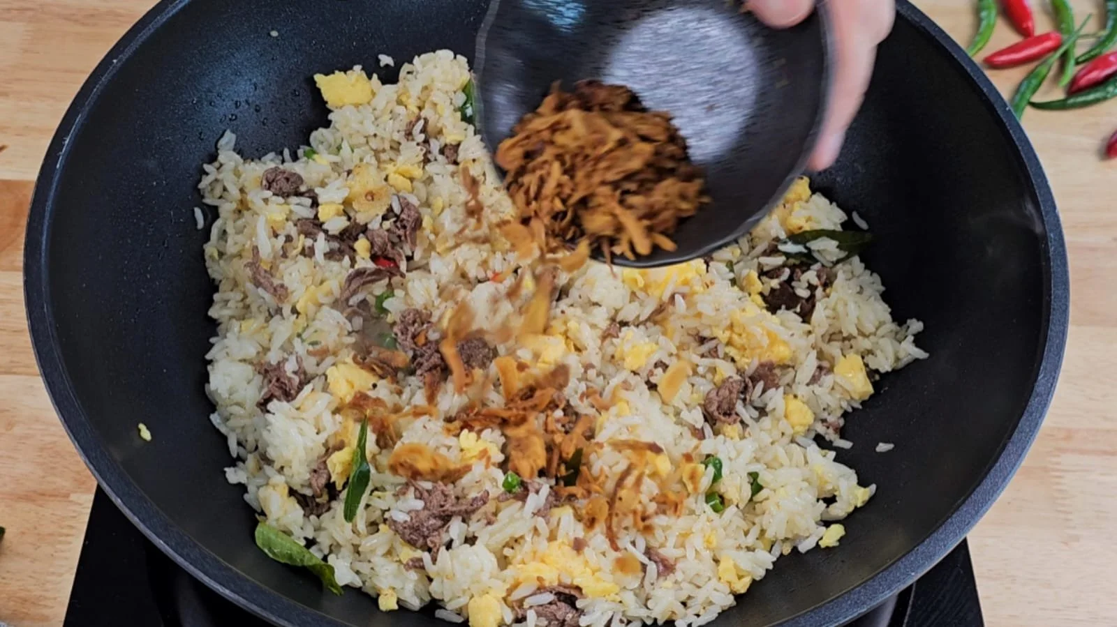 For extra crunch and flavor, I like to sprinkle in some store-bought fried shallots. I always keep a packet of these in the fridge because they’re so versatile and add a nice finishing touch to many dishes.