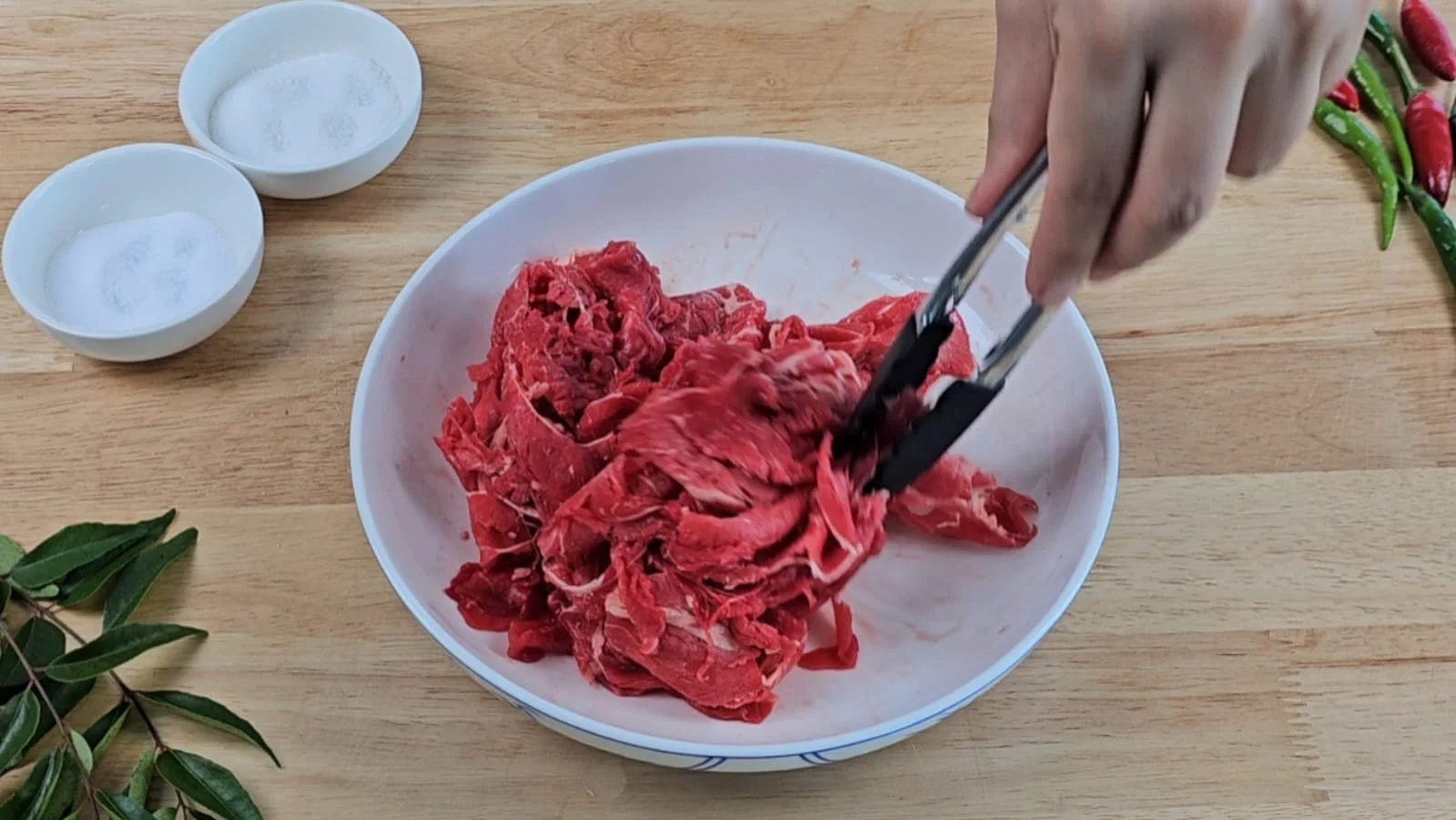 Season the beef – Sprinkle with a little salt and sugar for simple seasoning. If you prefer, you can also add a dash of soy sauce or chicken powder for extra flavor.