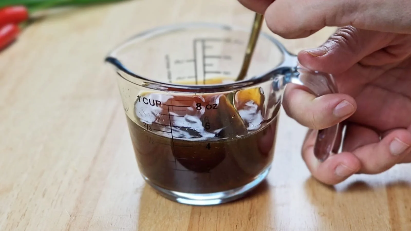 The sauce: In a small bowl, mix 1/2 cup of water, 2 tablespoon of soy sauce, 1 tablespoon of oyster sauce and 1 tablespoon of sugar. Mix well and set aside.