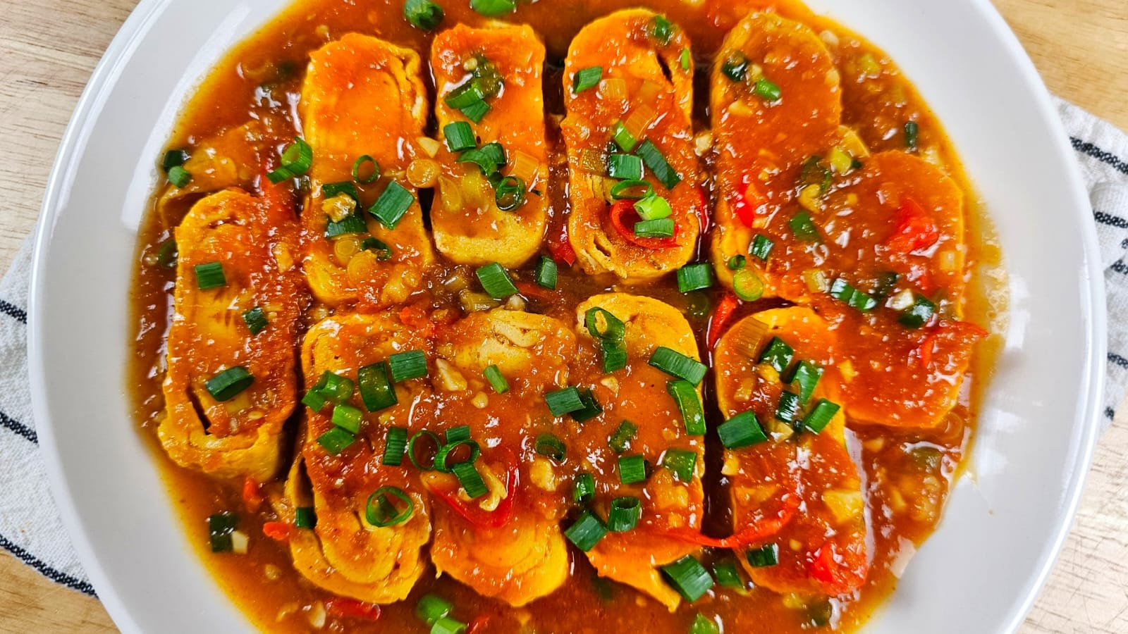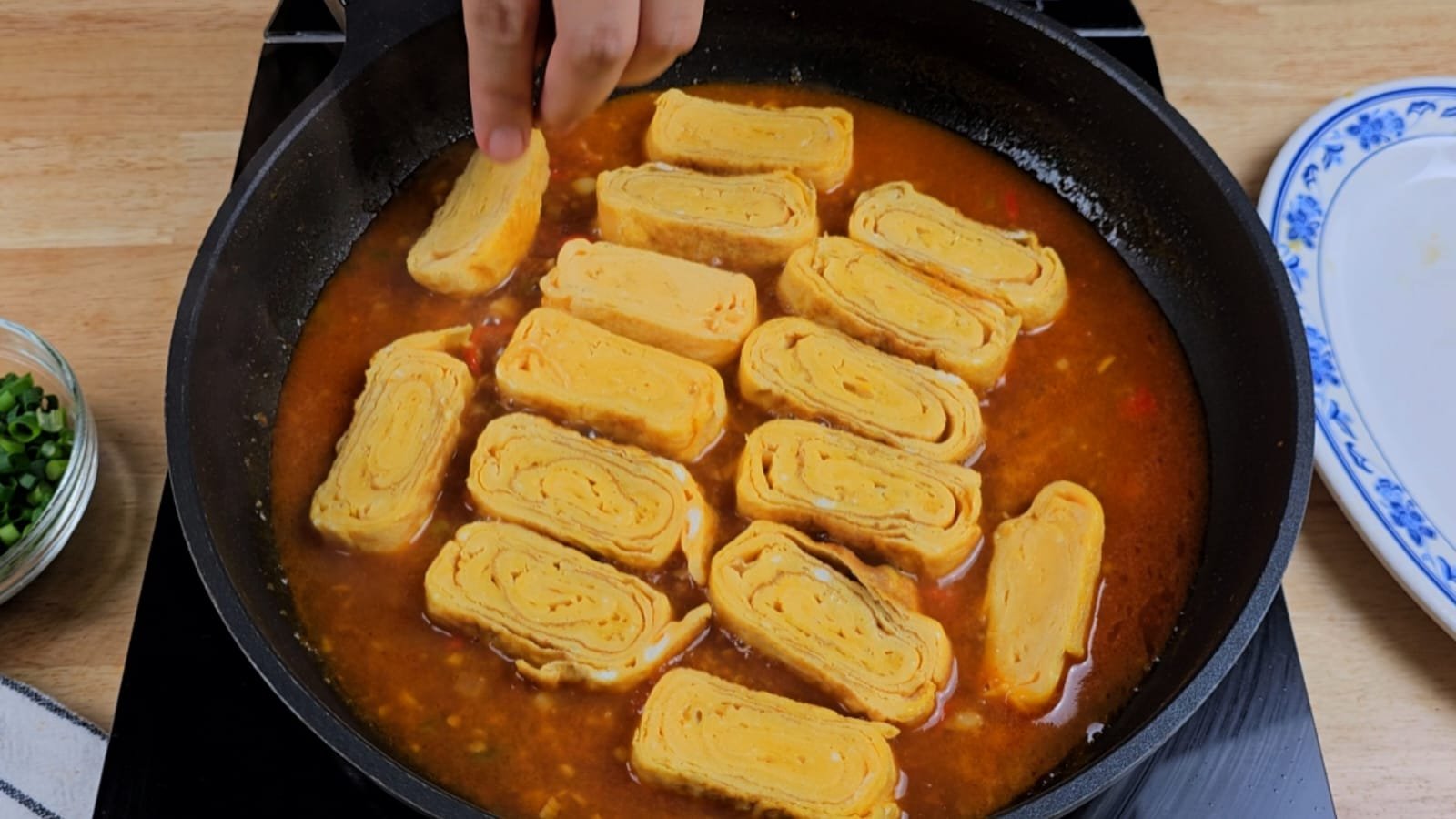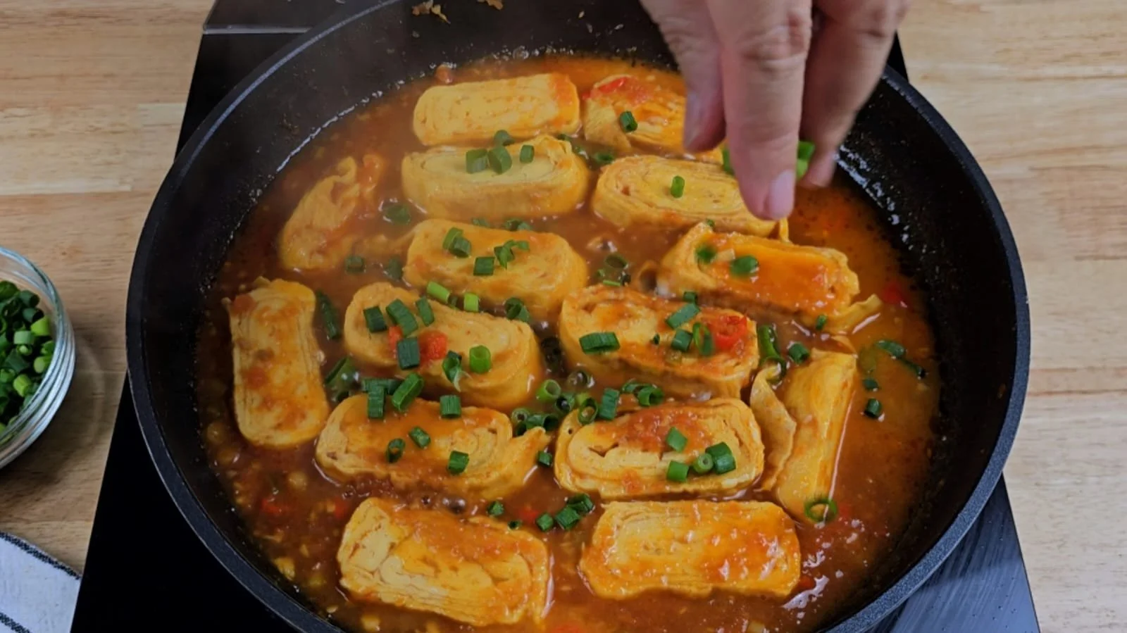 With just a handful of pantry staples, I put together these Sweet and Spicy Omelette Rolls—a dish that’s not only delicious but also budget-friendly. The thinly rolled omelette slices soak up a tomato-based sauce that’s perfectly sweet, spicy, and savory. It’s quick, comforting, and pairs beautifully with a warm bowl of rice.
