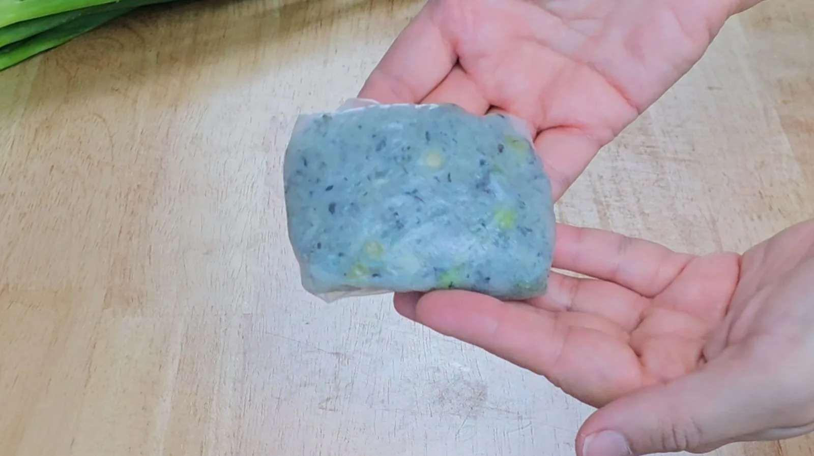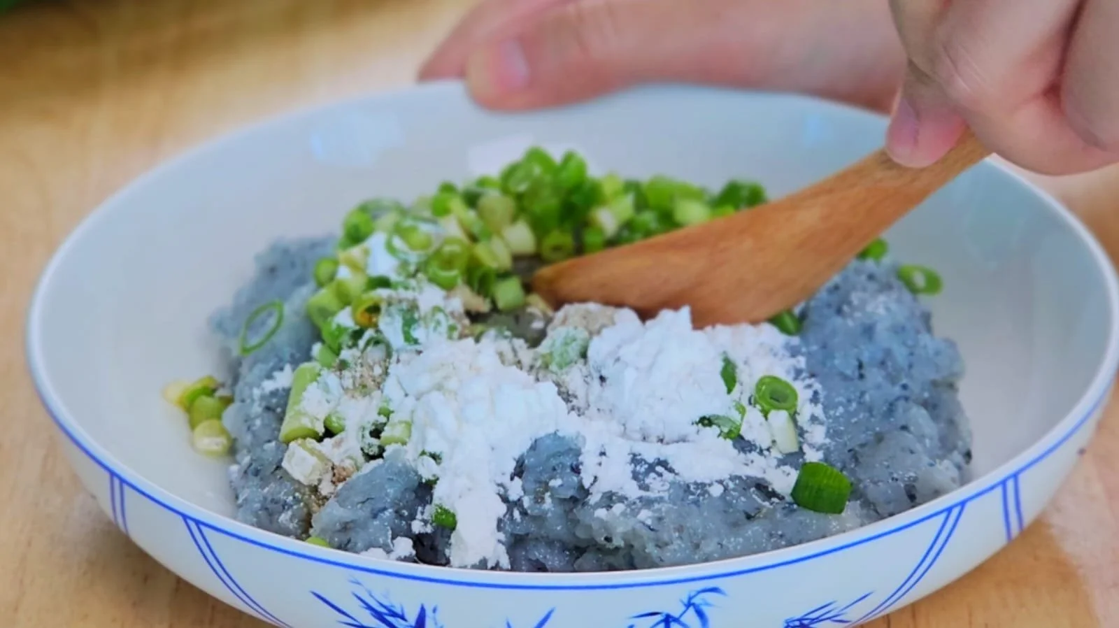 Next, season the prawn paste with some aromatics—add 1 minced garlic clove and about 20g of chopped scallions. Then mix in the seasonings - 1 tsp soy sauce, 1 tsp sesame oil, ½ tsp salt, 1 tsp sugar, ½ tsp white pepper and 2 tsp cornstarch to help bind everything together. Adjust the seasoning as needed to match your preferred flavor. Give everything a good mix until well combined, then set it aside.