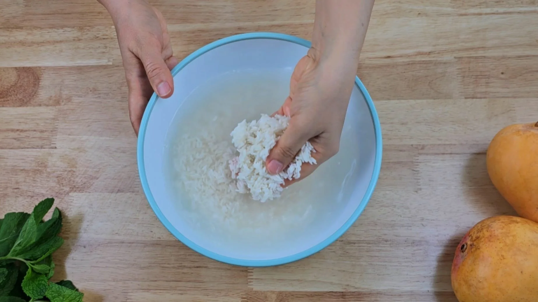 Washing the sticky rice