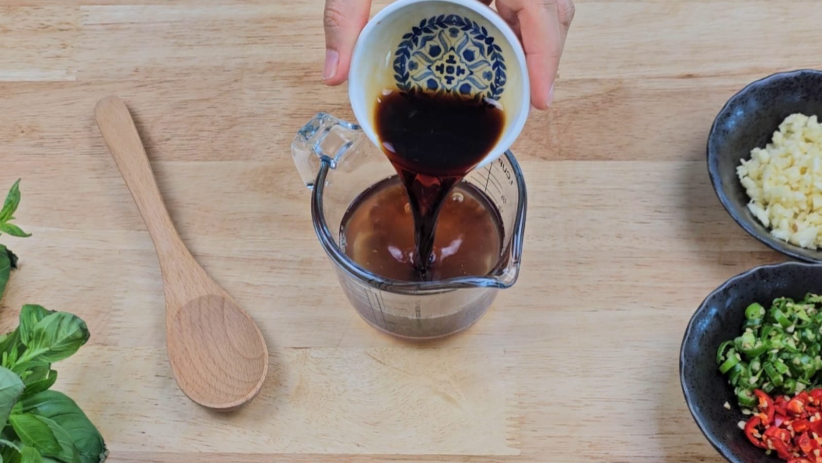 In a small bowl, combine 1/3 cup of chicken stock, 1 tablespoon of light soy sauce, 2 tablespoons of dark soy sauce, 2 tablespoons of oyster sauce, 1 tablespoon of fish sauce, and 2 tablespoons of sugar. Stir well until the sugar dissolves, then taste and adjust to your preference. Set the sauce aside — this will give your stir-fry that perfect balance of savory, sweet, and umami flavor.