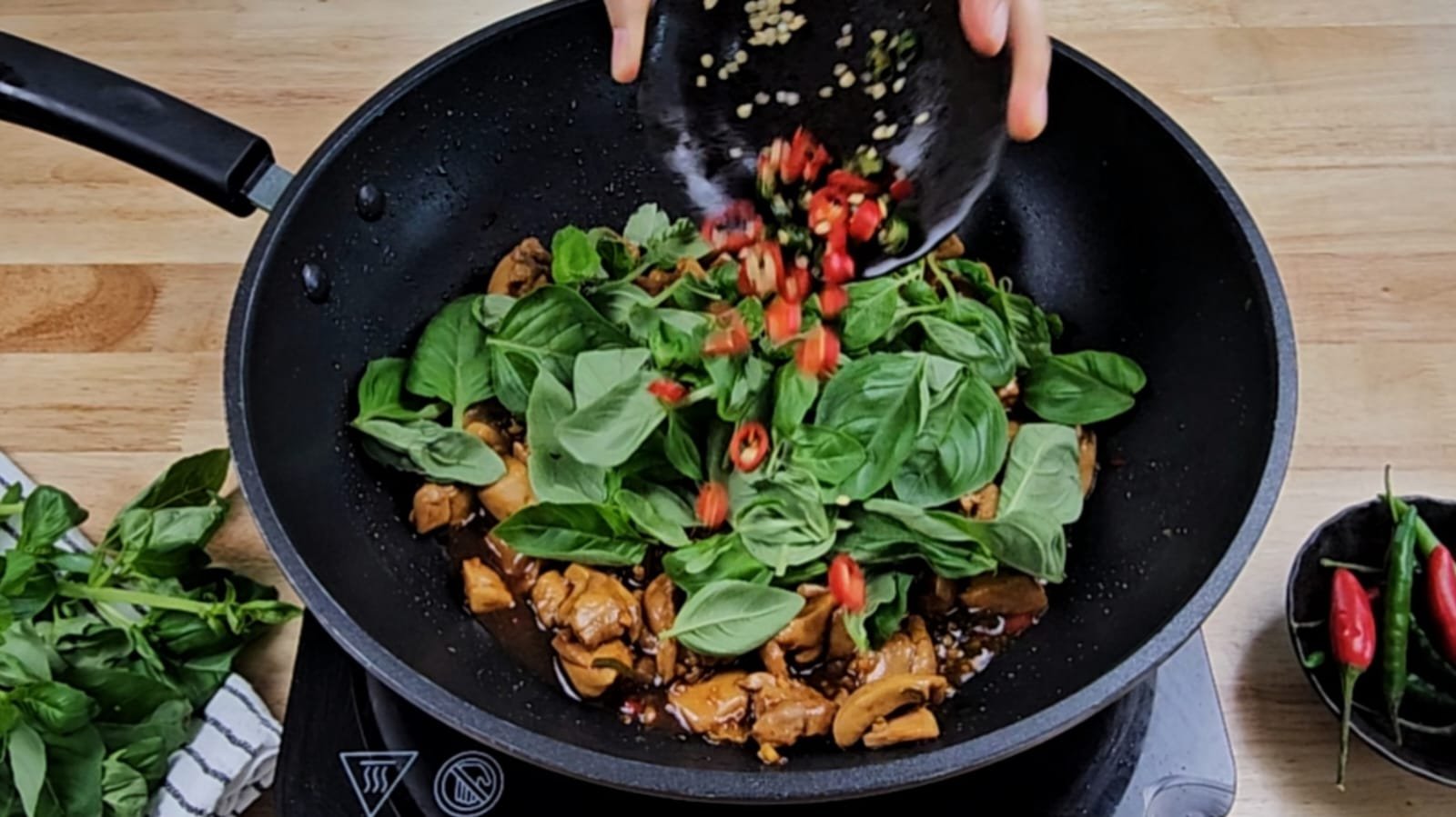 And that’s it — your Thai Chilli Basil Chicken is ready to serve!