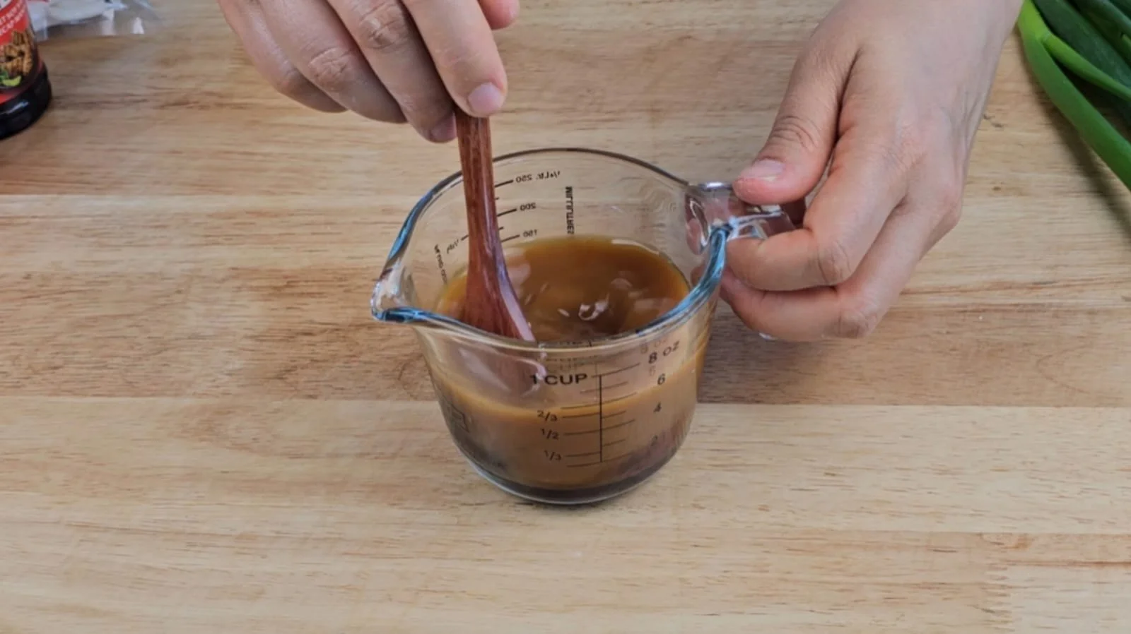 Prepare the sauce by mixing 1/3 cup of water, 2 tbsp of light soy sauce, 2 tbsp of dark soy sauce, 1 tbsp of Shaoxing wine, 1 tbsp of sugar and 1 tbsp of cornstarch. Mix it well and set aside.