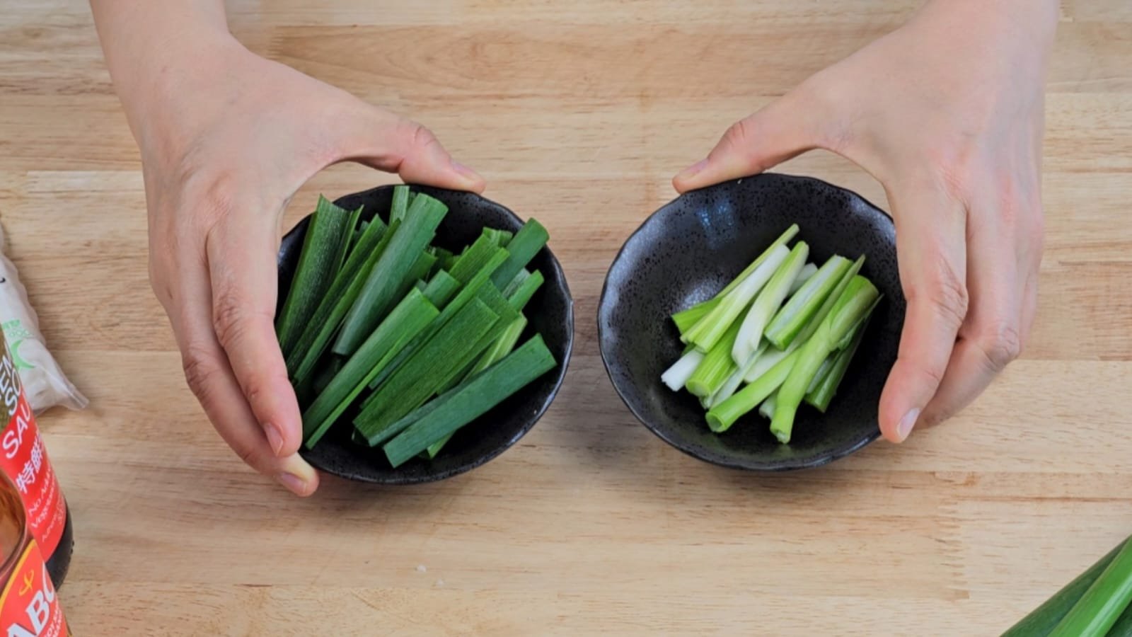 Chop the scallions into 2-inch pieces, separating the white and green parts, as they will be added at different stages of cooking.